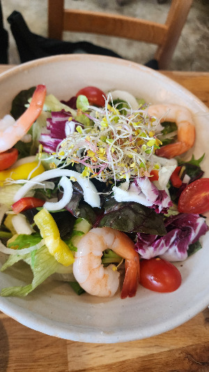 등 푸른 생선에 대한 편견은 비린내이지만 서황카츠에서는 냄새 없는 삼치를 맛보았다. 샐러드의 우동은 탱탱하고 쫄깃쫄깃한 식감의 면발과 고소한 참깨소스가 잘 어울렸다. 샐러드의 드레싱은 보통 묽어서 흐르기 때문에 건더기에 슬쩍 묻히는 경우가 많다. 하지만 서황의 드레싱은 야채와 새우와 면발이 되직한 소스가 잘 묻어 있어 싱겁다는 느낌은 들지 않았다. 새우살의 탱글함, 오동통한 면발의 쫄깃함, 야채의 아삭한 신선함, 참깨의 고소함이 입안에서 어우러져 콧노래가 절로 나오는 맛이었다. 오히려 검은깨를 쓰지 않은 게 신의 한 수 같았다.