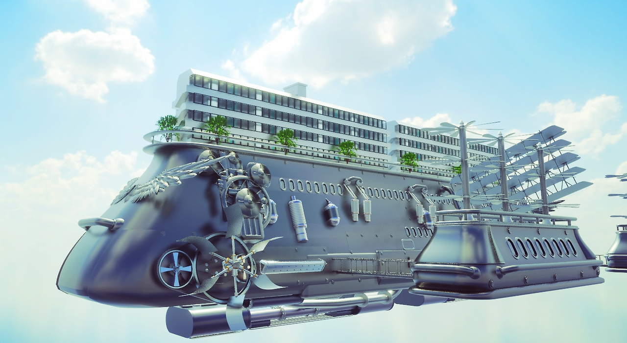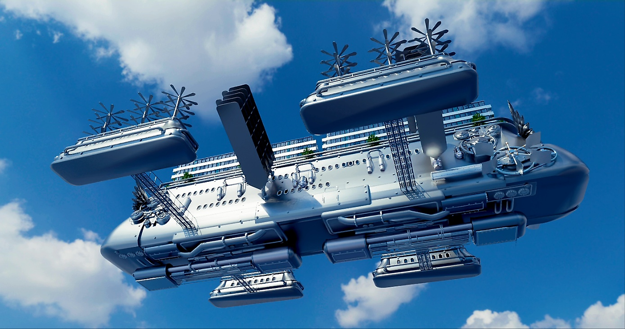 무수한 파이프가 달린 몸체에 프로펠러들이 쉭쉭거리며 돌고 있었다. 필자는 코웃음을 쳤다. 저런 조그만 프로펠러로 나는 것은 어림도 없을 텐데. 뭐, 여긴 꿈이니까 괜찮은가 보다.