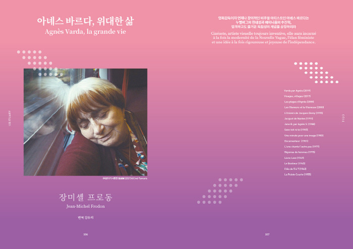 하지만 이번 호에 실린 아녜스 바르다의 오랜 친구이자 프랑스 영화 평론가인 장 미셸 프로동의 애도 글을 읽으며 일면식도 없는 아녜스 바르다를 혼자 보내줄 수 있었다.