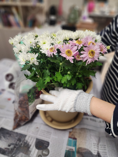 이런저런 사정을 얘기하니 사장님은 추운 날씨에 노지에서도 잘 큰다는 국화꽃을 추천해 주셨다.
