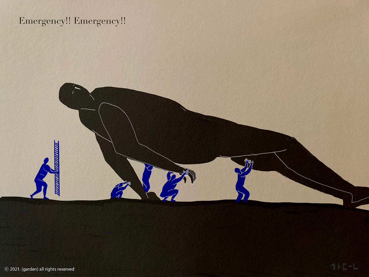 그림 속의 쓰러지고 있는 나의 모습은, 아직 바닥에 주저 앉지 않았다.