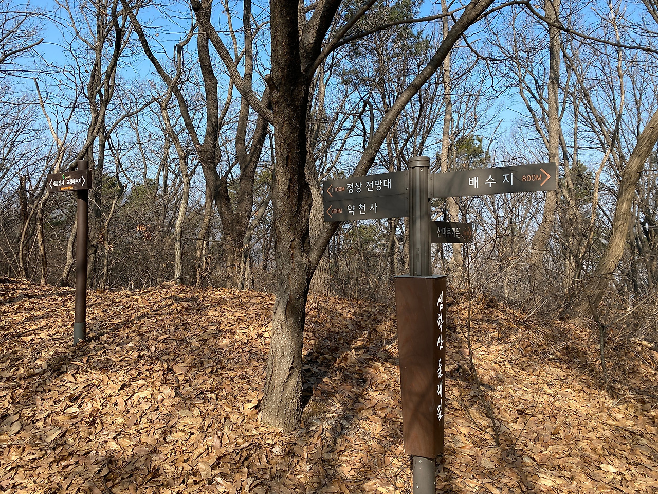휴일이라 그런지 산에 오르내리는 사람들이 많이 보인다. 부부, 가족, 청년들, 노인 등 다양한 사람들이 등산을 하고 있다. 나도 가족과 함께 왔으면 좋았을 텐데 하는 생각이 들었지만 아내가 오래 걷는 게 쉽지 않아 등산보다는 산책길을 찾아 걸어야겠다는 생각을 했다. 전날 밤에 옷을 준비하며 겉옷을 어떻게 입을까 고민을 했다. 산에 오르다 보면 분명 두꺼운 점퍼는 불편할 것 같고 또 가볍게 입자니 혹시 춥지 않을까 하는 생각에 결국 겨울 점퍼를 입고 갔다. 오르다 보니 더워서 옷을 반쯤 벗어 어깨에 걸쳤다. 조끼나 조금 더 얇은 점퍼를 입고 갔어야 했다. 좋은 경험이라고 생각했다.