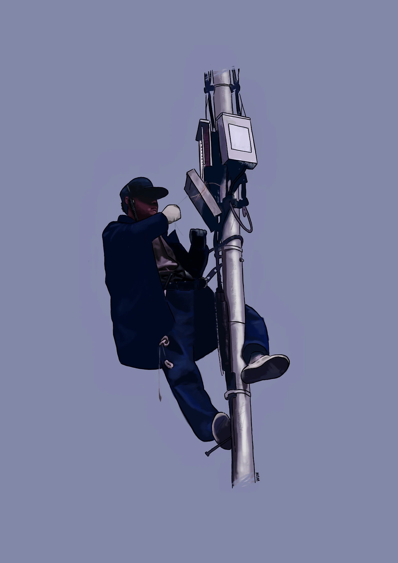 어릴 적엔 전기공이 전봇대에 올라가는 모습을 많이 봤는데 요새는 잘 볼 수가 없다. 그런 이유에는 길거리, 골목이 놀이터이자 운동장이었던 어린 시절과 비교해 지금은 길에 머물러 있는 시간이 줄어든 까닭도 있을 것이다. 가끔 전봇대에 올라가 보고 싶어서 높은 곳을 발판 삼아 올라갔다가 이내 겁이 나 내려오곤 했던 기억이 난다.