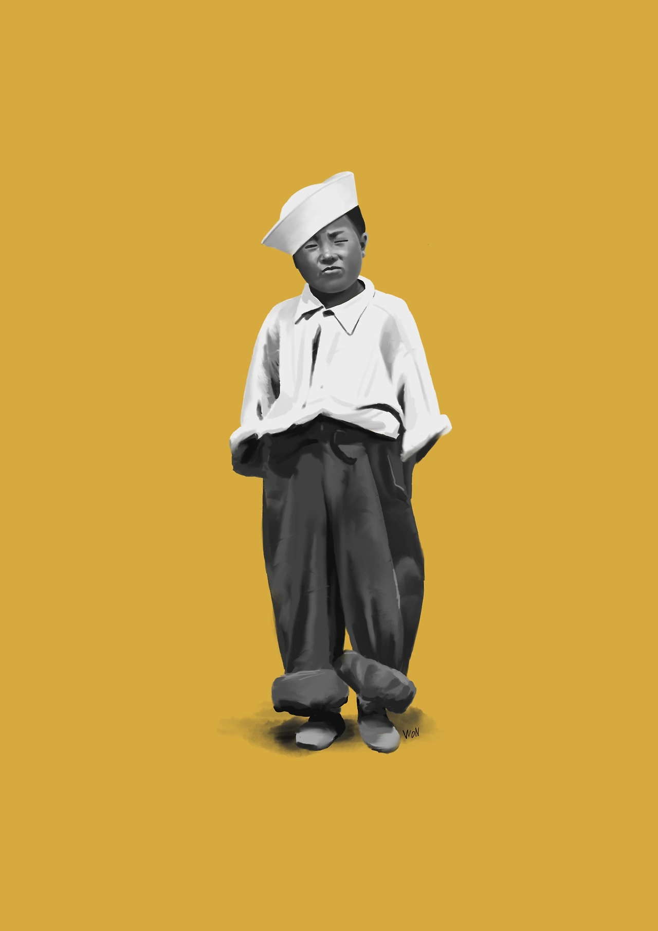 몸에 맞지도 않은 어른 옷을 입고 한껏 멋을 부린 소년. 그 옛날 가난했던 우리들의 낭만이자 아픈 모습이다.