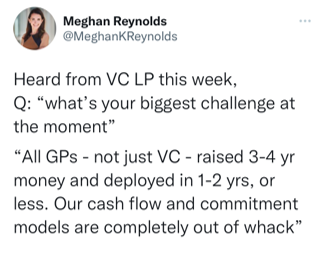 다만 대형 벤처캐피탈에 출자하는 LP 기관들은 투자 속도를 늦추라는 주문을 계속 넣고 있습니다. 보통 3 - 4년의 투자기관을 가정하고 10년 만기 펀드에 출자를 하는데 지난 호황기때는 2년마다 펀드 조성을 하니 자금의 미스매치가 점점 심화되었기 때문이죠.