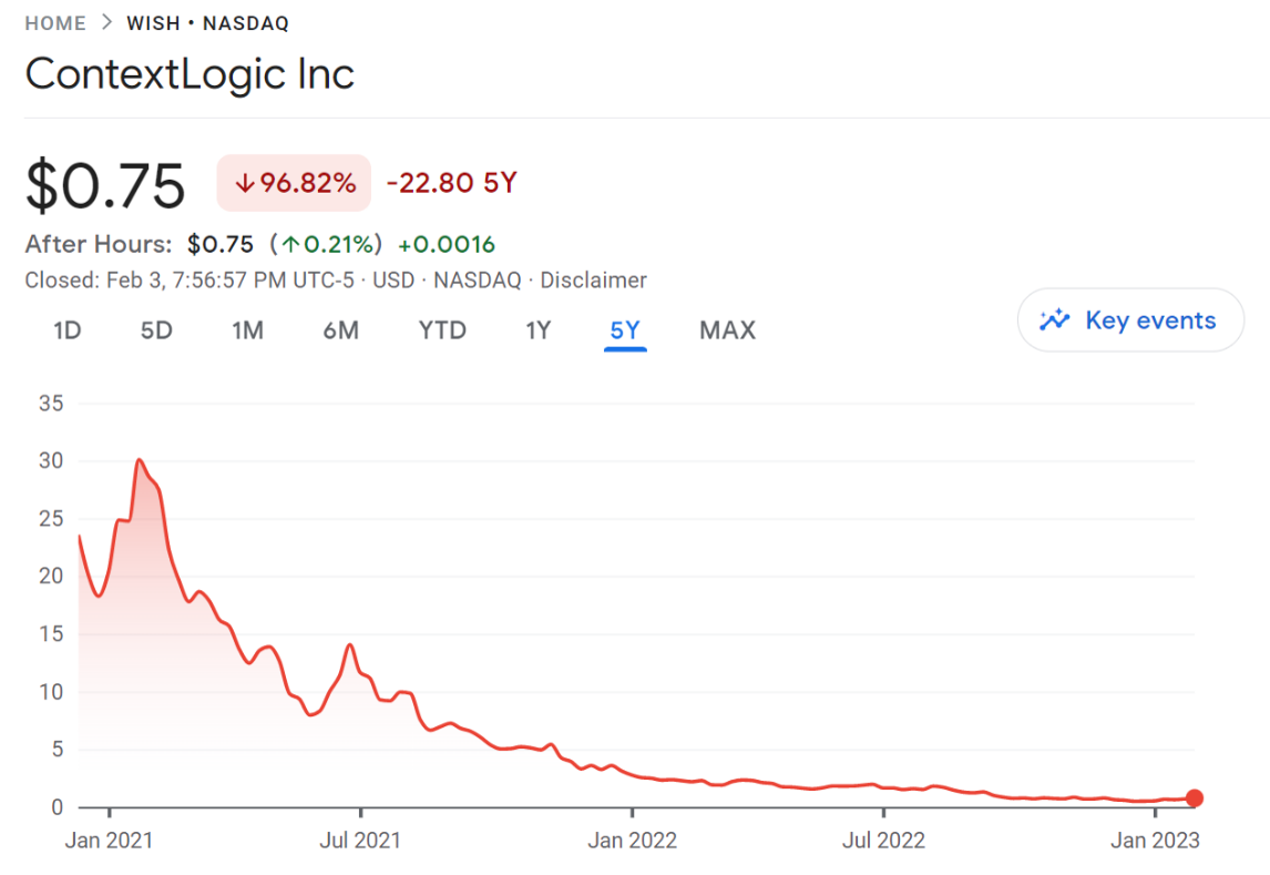 팬데믹에 힘입어 2020년 말 약 15조 원 기업가치를 인정받으며 나스닥 입성한 위시는 투자자들에게는 큰 수익을 돌려주었지만 호실절은 오래가지 못하였습니다.