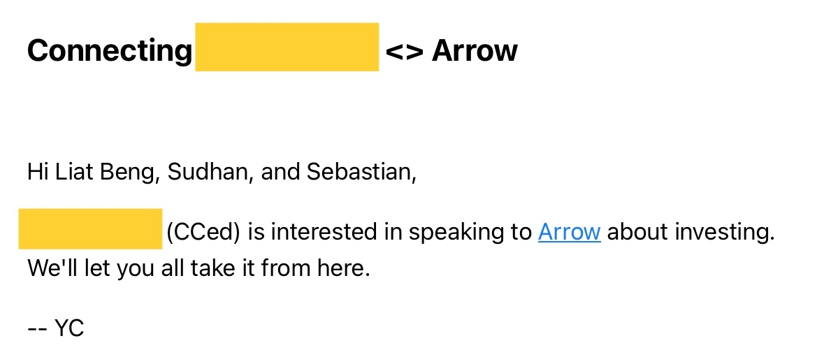 소개의 방식은 간단하다. YC 데모데이 웹사이트에서 투자자가 스타트업 이름 옆의 Like를 누르면 YC가 창업자의 이메일로 자동 연결 메시지를 보낸다. 투자자와 창업팀이 이메일로 연결되었기 때문에 그다음부터는 철저히 각자 알아서 팔로업을 진행하면 된다. 창업자 입장에서는 관심 있는 투자자 연락처를 받았기 때문에 그다음부터는 자신의 방식대로 미팅을 진행하면 된다. 원하는 곳만 골라서 미팅을 잡을 수도 있고, 이미 펀딩이 끝나서 다음 라운드를 위해 연락처만 저장할 수도 있다.