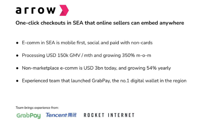 [Tagline] 현재 미국에서는 원클릭 체크아웃 서비스를 제공하는 'Bolt'와 'Fast'가 최근 유니콘에 등극하며 빠르게 성장하고 있기 때문에 "One-click checkouts in SEA"라고 하면 투자자들은 사업의 내용과 잠재력을 쉽게 이해할 수 있다. 보통 1초 만에 직관적으로 회사를 설명하기 위해 '유명한 회사'의 '다른 지역', '다른 버티컬' 등의 방식을 많이 사용한다.