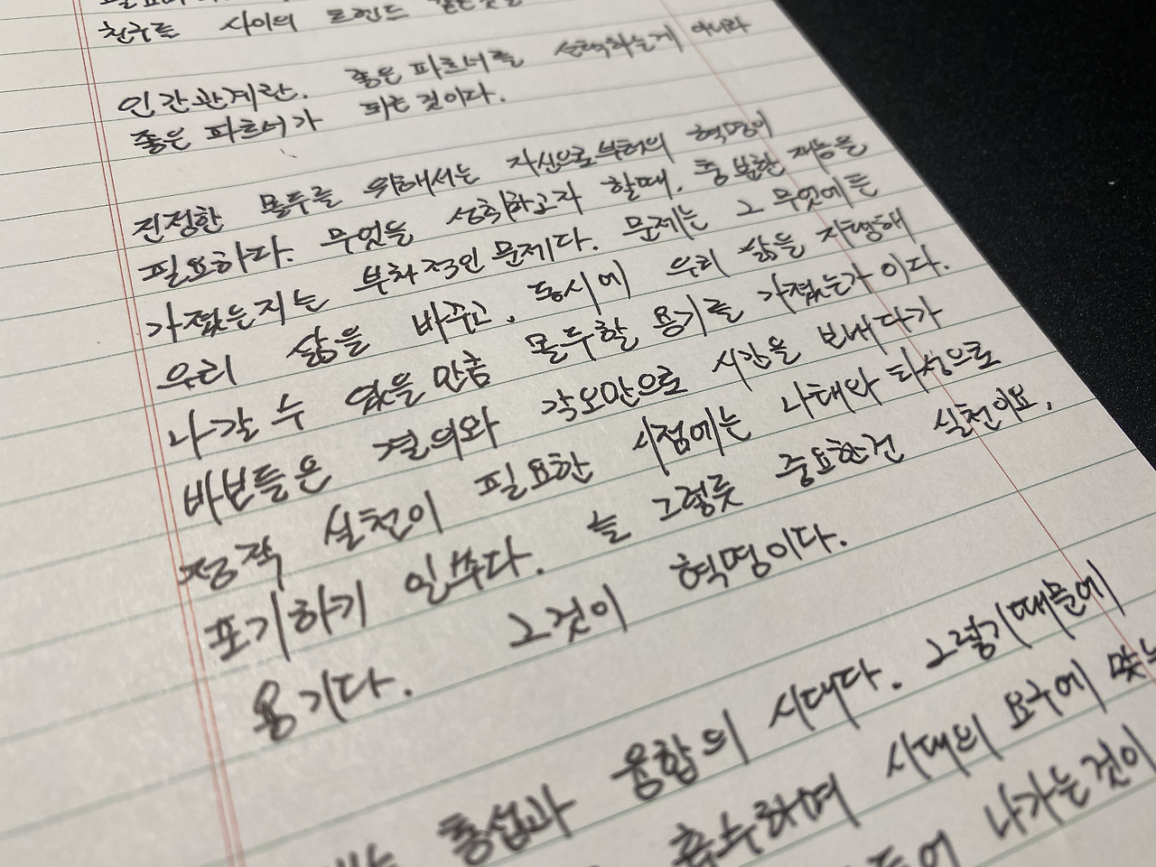 안타깝게도 난 좋은 사람과 좋은 리더 사이 애매한 경계에서 줄다리기를 하고 있었다. 직장에선 좋은 사람 보다는 좋은 리더가 돼야한다. 그리고 좋은 리더가 되기위해선 누구에게나 미움받을 용기 쯤은 가지고 있어야 한다. 조직에서 좋은 선임은 친절하고 커피 잘 사주는 선임이 아니라 나를 성장시켜주는 선임이다. 욕심이지만 나도 그런 선임으로 기억됐으면 좋겠다.