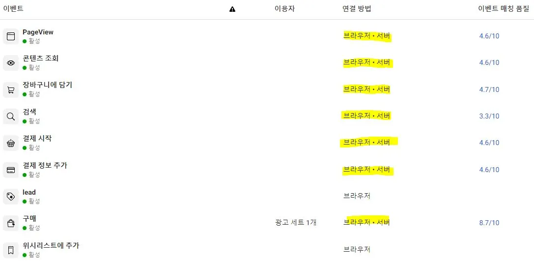 4. 해외 대상이다 보니 iOS 유저가 많아서 ATT(app tracking trasparency) 정책으로 분석에 제약이 많았다. 페이스북/인스타그램 광고의 경우 가뜩이나 '인앱브라우저' 이슈로 인해 광고 관리자 데이터와 GA 데이터 간 괴리가 큰데 과거 페이스북 광고 보고서에서 제공했던 일부 상세 지표들마저 더 이상 제공하지 않게 돼서 여러모로 골치가..ㅜ 광고와 GA의 성과 인정 방식이 다르다는 걸 감안해서라도 전환 데이터 차이가 심해 어떤 걸 신뢰해야 할지 애매한 경우는 비단 나뿐만은 아닐 거다. 이때 한 가지 팁이라면 페이스북 이벤트 설정 시 일반적으로 사용하는 '브라우저 픽셀' 방식 외에 '전환 API' 방식도 함께 사용하는 걸 권장한다. 후자는 브라우저간 이탈 문제와 관계없이 서버 to 서버로 전송되는 방식이라 픽셀의 취약점을 꽤 보완해줄 수 있는데 실제 2가지 방식으로 이벤트를 설정하고 난 뒤로는 GA 데이터와 큰 차이가 나지 않았다. 주의할 건 2가지 방식으로 모두 사용할 경우 자칫 중복 데이터가 집계될 수 있다는 점이고 이 부분은 별도 체킹 후 수정해야 한다. '어트리뷰션의 올바른 이해와 유저 트래킹'은 모두에게 공평한 숙제지만 역량에 따라 공평하지 않은 결과를 낳는다.