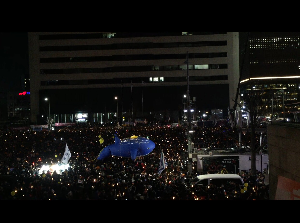 오늘도 광화문 광장은 촛불로 밝게 빛났다빛의 바다를 헤엄치는 고래를 보는 건 어쩐지 눈물나는 일이라나는 다만 조금만 더 소리 높여 진실을 부를 뿐이다바다로 떠난 배는 때가 되면 돌아온다고 하는데좀처럼 오지 않는 건 무엇때문인가역시 나는 다만 조금만 발을 돋우어 불러볼 뿐이다