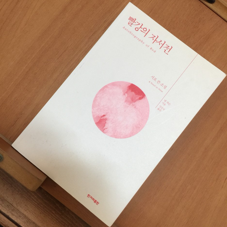 <빨강의 자서전>은 난해하다면 난해하고, 어렵다면 어려운 소설입니다. 하지만 쉽게 생각하면 읽을 수 없지도 않죠. 문장 형식이 조금 낯설고, 내용에 난해한 부분이 종종 등장하지만 줄거리 자체는 간단합니다. 게리온과 헤라클레스의 이야기니까요. 빨강인 존재, 날개 달린 괴물 게리온과 헤라클레스 이야기라는 겁니다.