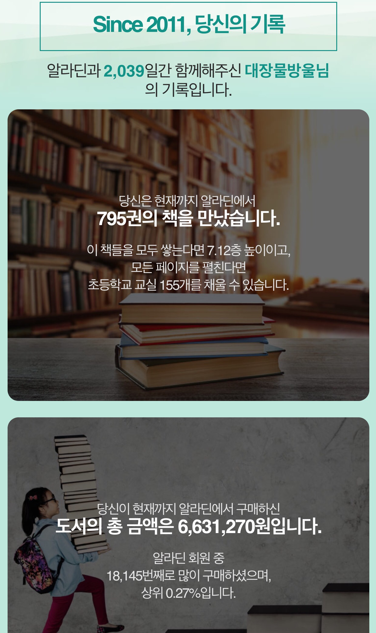 올해도 어김 없이 알라딘은 나의 구매 기록을 확인시켜 주었다.
