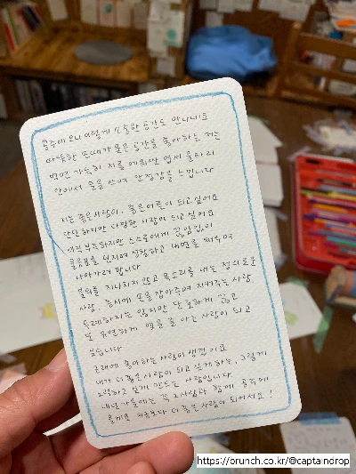 엽서의 주인공은 이미 충분히 좋은 사람임이 분명했다. 일단 책방을 '소중한 공간'이라고 불러주는 마음만 봐도 그랬다. 이미 충분히 좋은 사람인 탓에 자신이 더 좋은 사람이 될 수 있음을 알고, 더 노력하고 싶다고 말할 수 있는 사람.