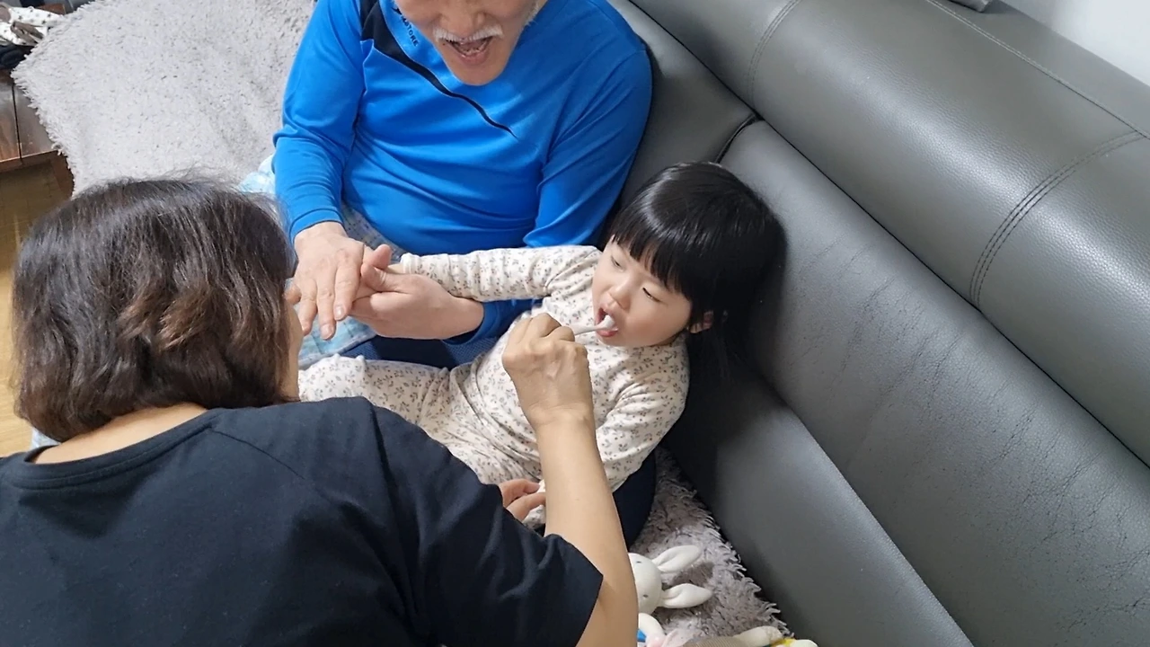 아이는 가는 길에서도, 오는 길에서도 차에 타기 무섭게 잠들어 새근새근 거렸고, 할머니댁에서도 엄마의 빈자리를 전혀 느끼지 않는 듯, 밝은 웃음과 귀여운 몸짓으로 집안 곳곳을 분주하게 오가며 엄청난 활동량을 보여주었다. 그래서인지 평소와는 다른 왕성한 식사량으로 똥똥한? 배를 선보여주었다는 사실. 물론, 할머니, 할아버지와 헤어지는 순간의 '오열 엔딩'이 나름 위기의 순간이라 할 수 있었지만.