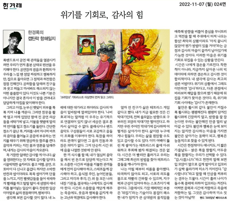 #크라잉넛 #캡틴락 #한경록 #이상면 #칼럼 #삽화 #한겨레 #캡틴락항해일지 #cryingnut