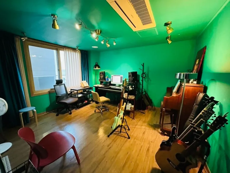 작업실에서 혼자 보내는 시간이 정말 달콤하다. 음악 생활한 지 28년 만에 처음으로 개인 작업 공간을 마련했다. 월세가 조금 비싸지만 오롯이 나만의 공간에서 시간을 보낼 수 있다니 그저 감사한 마음으로 누리고 있다. 작업 공간의 테마를 '쉼과 모험의 공간'으로 정했다. 그래서 전체적인 컬러를 숲과 바다의 중간 색인 청록색으로 정했다. 숲에서 쉬면서 바다로 상상의 모험을 떠나는 공간이다.