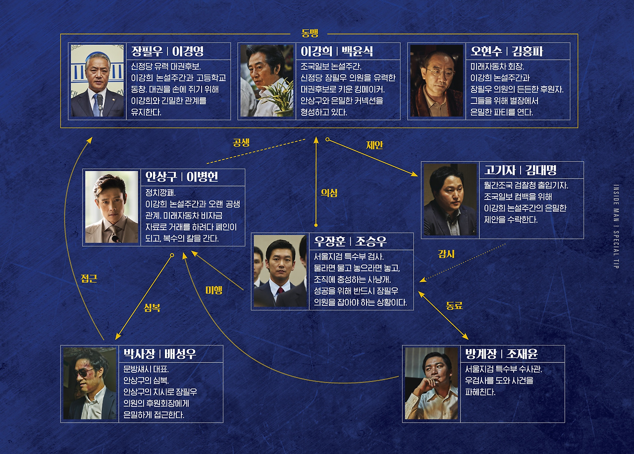 <내부자들>을 아직 안 보신 분들은 <내부자들:디 오리지널>을 보시기 전에 간단히 인물관계도를 한 번 훑고 가시는 걸 권한다. 훨씬 수월하게 스토리에 몰입할 수 있기 때문이다.