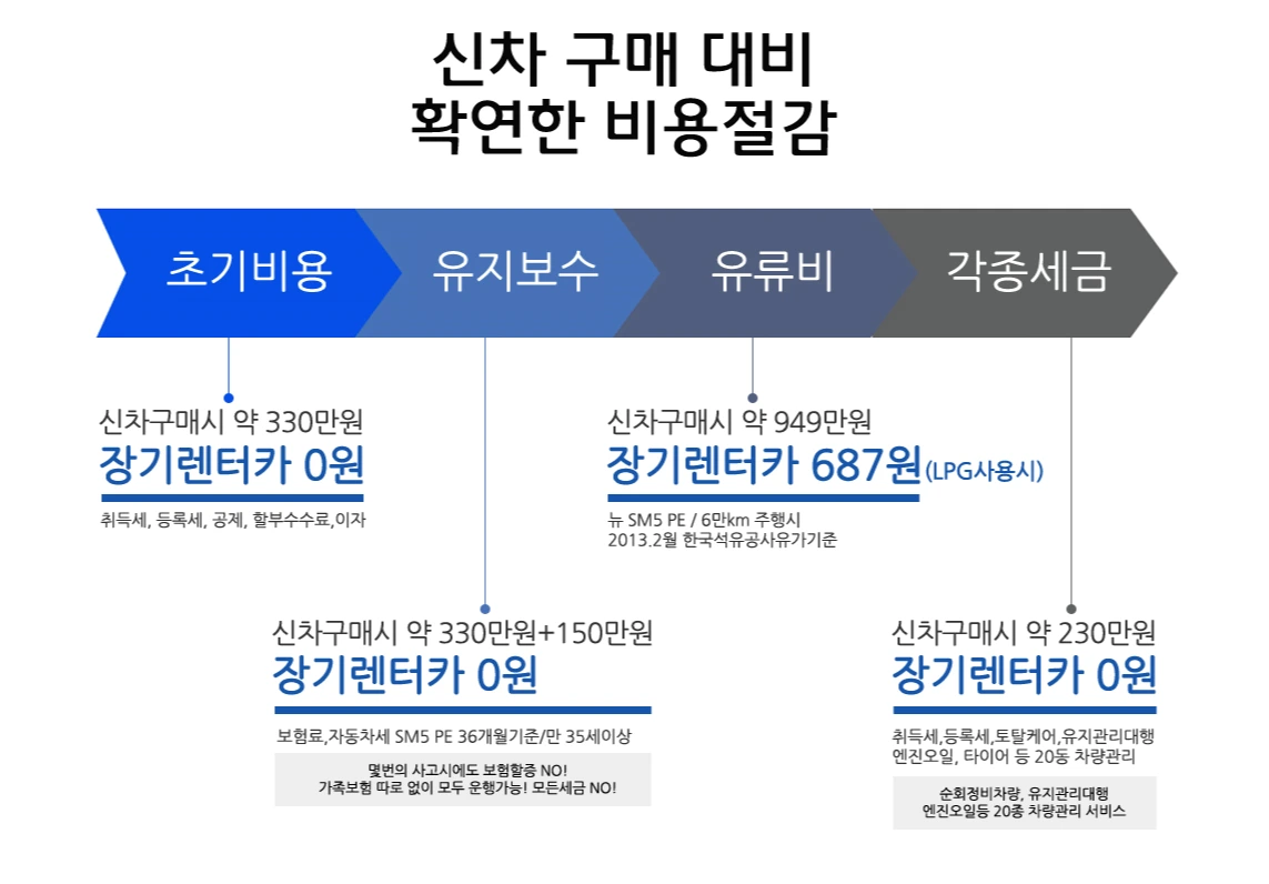 신차 구매 대비 장기렌트가 확연한 비용절감이 될 수 있다는 점!