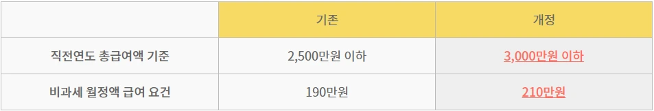 ▶ 생산직 근로자의 총급여액 기준 완화