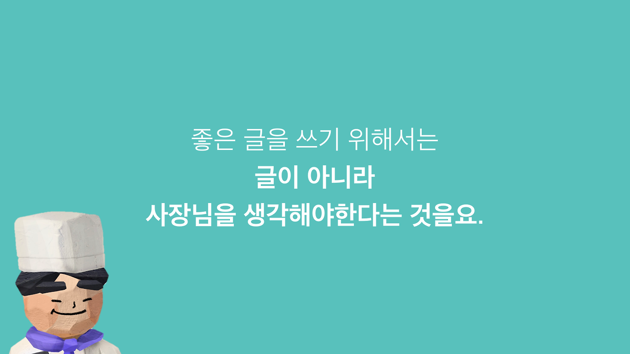 사장님에 대한 생각을 탄탄히 해두면, 그 이후의 글쓰기 방법은 어렵지 않습니다.