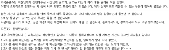 강의 후, 구성원들의 후기는 모두 감동적이었습니다. 몸 둘 바를 모를 정도로요.