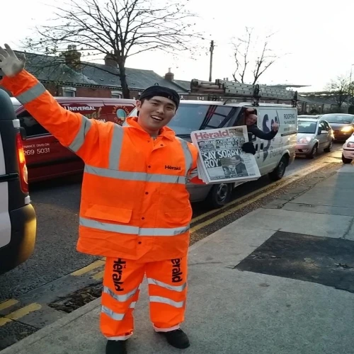 자랑도 하고 싶었다. 나는 아일랜드에 와서 신문팔이까지 한다. 그리고 잘 팔고 있다. 뭐 이런 이야기가 당시에는 하고 싶었다. 어쩌면 어긋난 허세 있는지도 모른다. 한국에서 라면 쪽팔리는 일 따위는 하지 않았을 테니, 절대 있을 수 없는 일이었지만 그런 것을 '할 수 있는' 내가 대견했는지도 모른다. 그렇게 아래위로 헤럴드라고 적힌 주황 작업복을 입고 춤을 추었다.