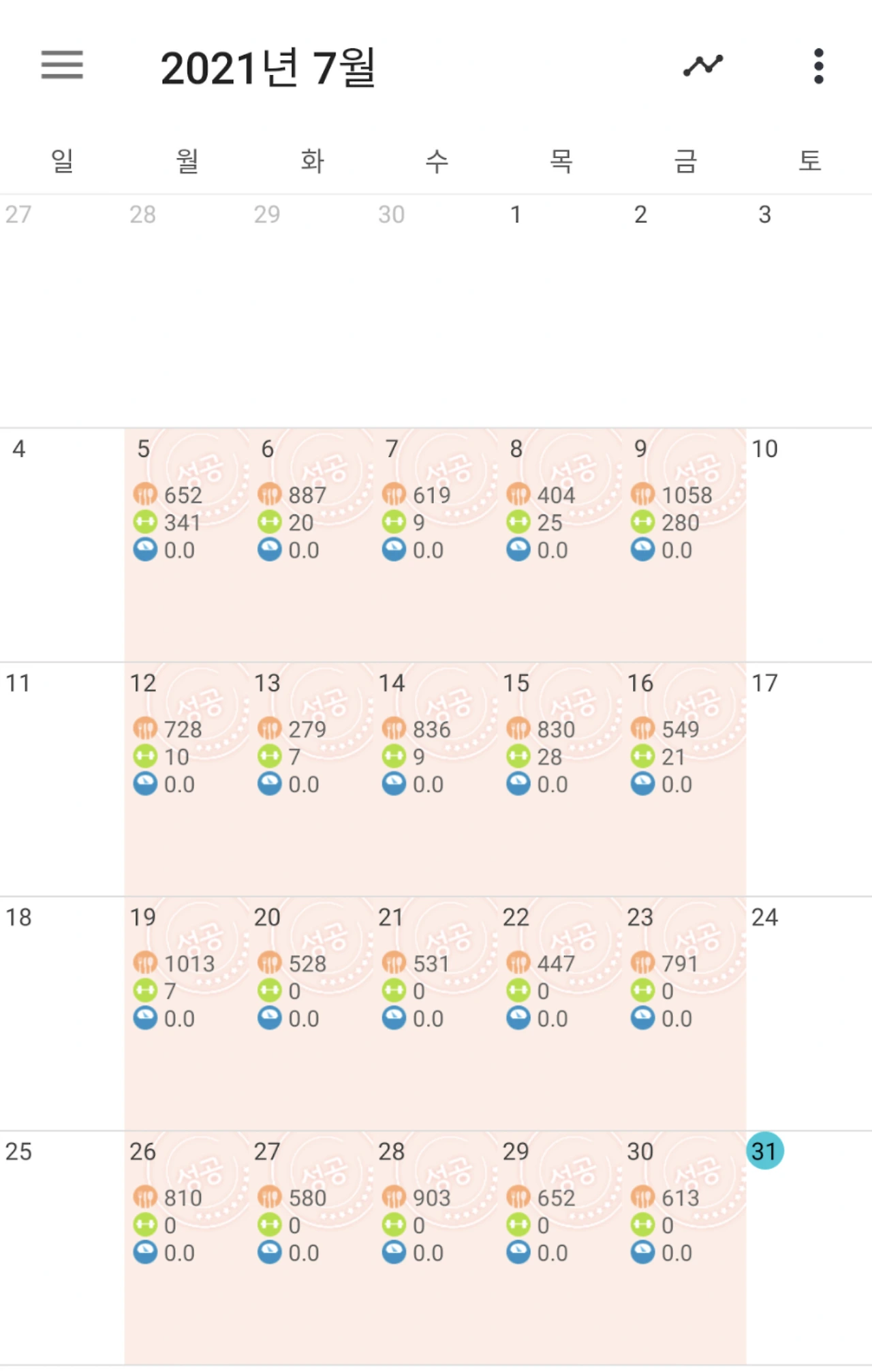 7월에는 식단인증이라는 나와의 약속에 성공했다.