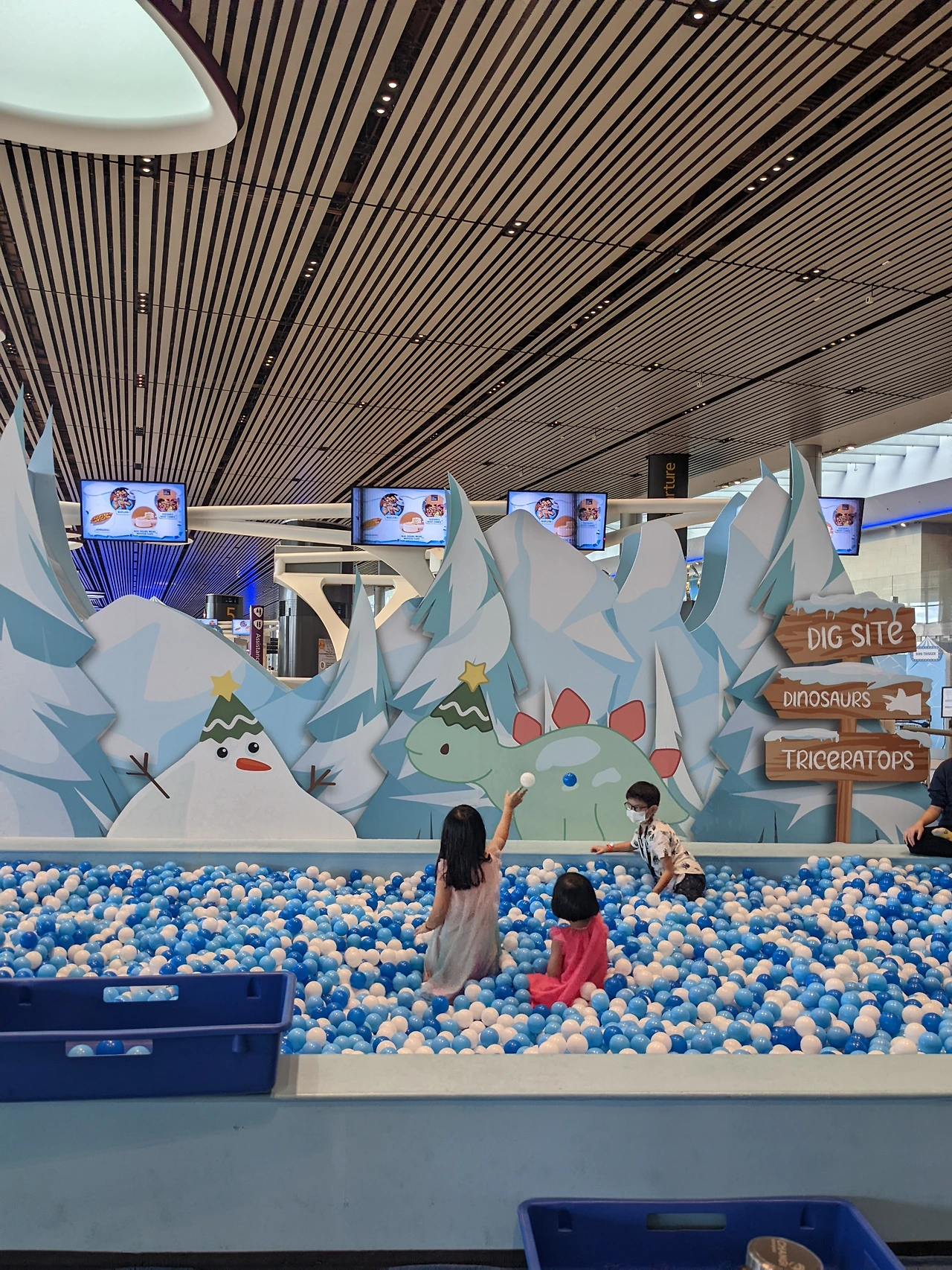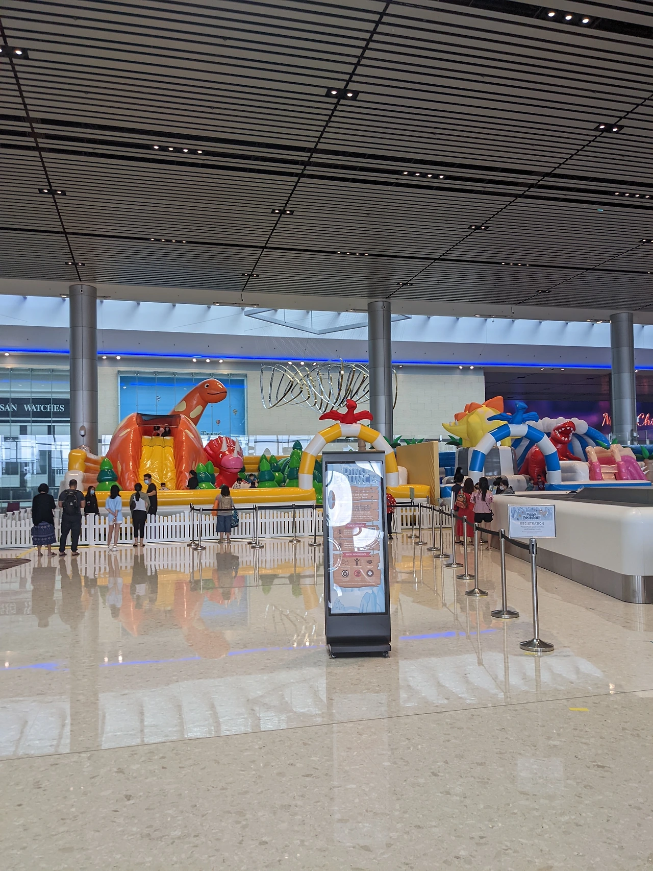 여행 가는 것도 아닌데 공항으로 향했던 이유는 바로 공룡 테마로 된 아이들 놀이터 Dino Carnival 이 곧 마지막 날이라고 해서였다. 안 그래도 좁은 싱가포르인데 코로나로 인해서 웬만한 관광지나 놀이시설엔 사람들로 북적이던 터라 그냥 집에서 있을까 했지만, 집에서 지루해하는 아이들을 보고 있자니 어딘가로 나가서 뛰어놀게 해주고 싶었다. 하지만 밖에는 새해 첫날부터 비가 내리고 있었고 실내 공간을 물색하던 중 의외로 공항을 찾았던 것이었다. 행사의 거의 마지막 날이라서 그런지 사람들이 생각했던 것보단 많지 않아서 한산했다.
