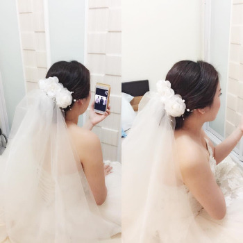 거의 3시간에 걸쳐서 신부님의 메이크업과 헤어스타일링을 마무리했다.