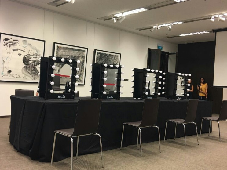 도착하고 나자 메이크업 아티스트들은 따로 미팅룸에서 대기해야 했다. 하루하루 바쁘게 가족들을 위해 일하시는 어머니들을 응원하기 위해 마련된 서프라이즈라니, 기획의도부터 엄마미소가 저절로 지어졌다. 마치 우리 엄마를 위해 비밀 깜짝파티를 준비하는 것 같은 느낌이었다. 어머니들의 메이크업 장소로는 본사 내 갤러리가 있었는데, 주최하던 측에서 화장대와 vanity거울을 준비하면서 순식간에 메이크업룸이 되었다. 대기하는 동안 다른 메이크업 아티스트들도 저마다 큰 메이크업 트롤리를 가지고 속속 도착했다. 그중 나의 아카데미 동기도 만나게 되어서 반갑게 이야기를 나눌 수 있었다.
