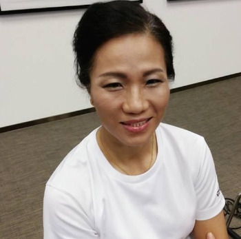 어머니들은 랜덤으로 배정이 되었고, 나는 toast box 커피숍에서 커피 마스터로 일하시던 어머니를 화장해드렸다. 어머니는 평소에 화장을 거의 안하신다고 하시면서 많이 쑥스러워하셨다. 어머님들의 화장에서 피부 표현이 제일 중요하기에, 주름에 파운데이션이 끼지 않도록 양 조절에 신경을 많이 써야 했다. 더군다나 내가 맡은 분은 갈매기 모양 눈썹 문신을 하셔서 더욱 하기가 어려웠다. 이렇게 쉽지 않은 상황을 마주할 때면 어떻게 해야 최대한 자연스럽게 연출할 수 있을까 고민이 되지만 그럴 때마다 연구하면서 많이 배우는 계기도 된다. 최대한 문신 형태를 컨실러를 사용해서 조금씩 수정하는 식으로 진행했더니 강한 인상이 한결 나아졌다.