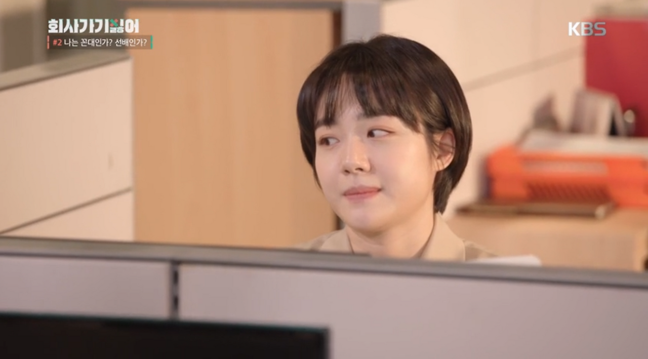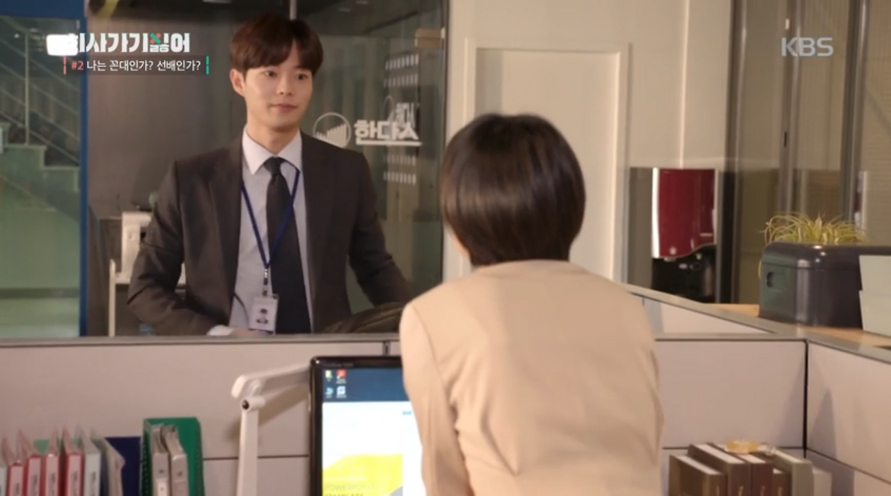 드라마 '회사 가기 싫어'에서 신입사원 노지원과 사원 이유진