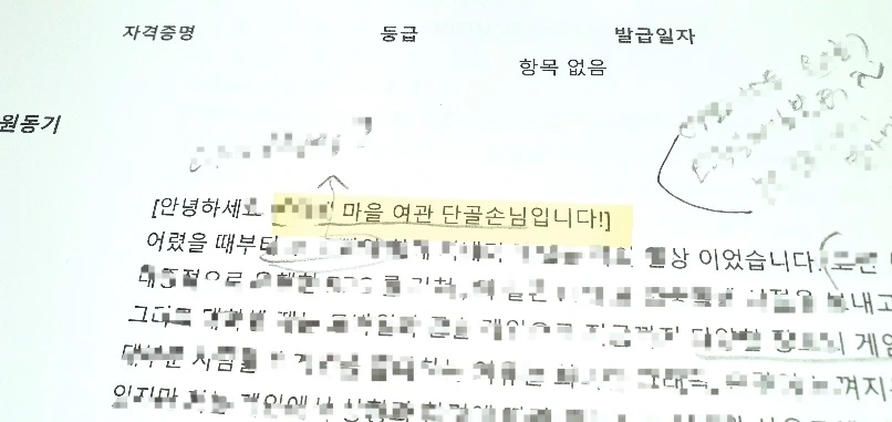 해당 지원자의 입사지원서 (내용 마스킹)