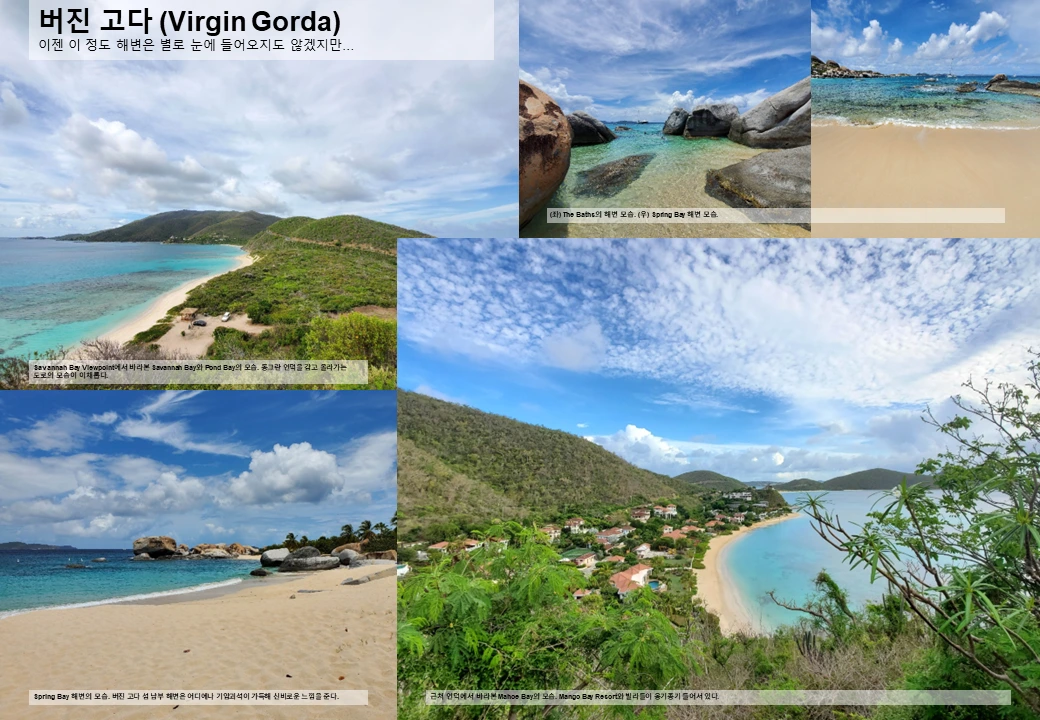 그렇다고 버진 고다 섬의 다른 부분이 아름답지 않냐 하면 그것도 아니다. 섬 곳곳에 수준급 아름다움이 존재하는데, 단지 워낙 유명한 곳이 있다 보니 눈에 덜 들어오는 것일 뿐. 이는 사실 대부분 카리브해 섬에서 공통적으로 발견하게 되는 현상이다. 유명 관광지를 가보고 대만족하는 것은 물론이지만, 사람도 별로 없는 한적한 해변이나 마을에서 의외의 행복감을 느낄 때도 많다.