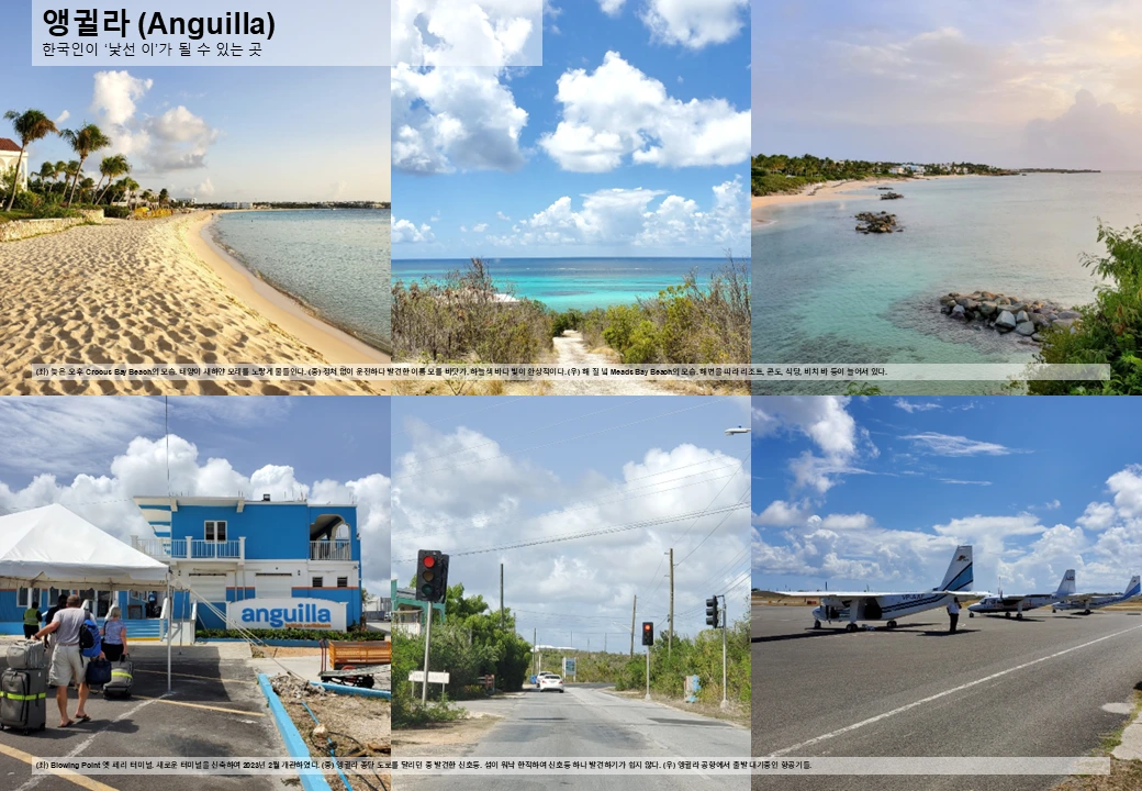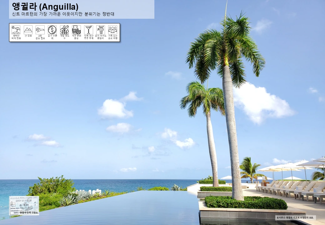 입국 요건: 앵귈라는 영국령이며, 대한민국 국민은 앵귈라에 무비자 입국 가능 (최장 3개월이라 하나, 항공권/숙박 등 여행 계획에 맞게 체류 기간 부여하니 유의).