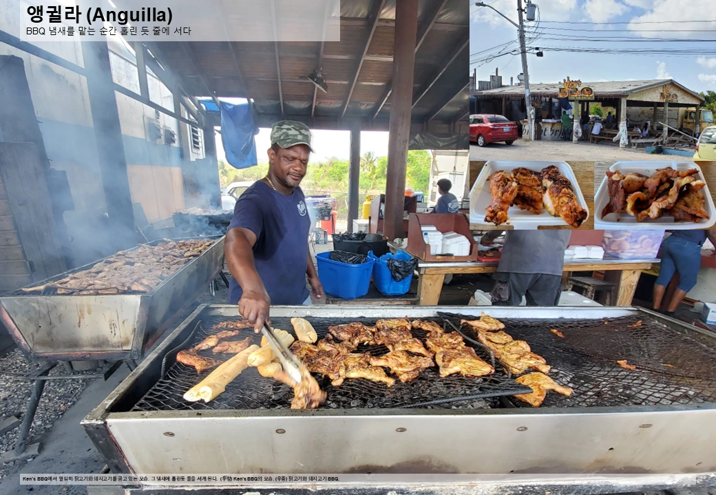 식당/바: 식당은 대부분 Sandy Ground, Meads Bay, The Valley 지역에 위치. 주로 양식 또는 캐리비안 요리를 제공하나 중식당도 여럿 존재. 양식은 Sandbar, Artisan, Veya, Blanchards 등을 추천하며, 캐리비안 요리는 Sharky’s, Tropical Sunset 등을 추천. 그러나 Ken’s BBQ 등 소박한 식당 중에도 훌륭한 경우 많음. 고급 리조트 내 식당의 경우 외부인 식사 가능 여부 확인 및 사전 예약 권장. 자세한 정보는 앵귈라 관광청으로 (https://ivisitanguilla.com/cuisine).