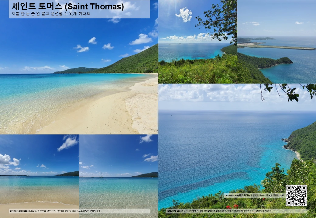 하지만 이 다짐도 무색하게, 채 5분도 되지 않아 아름다운 해변에 정신이 팔리고 말았다. 공항 바로 옆인데도 한없이 아름다운 바다색. 배가 고파 찾아갈 식당까지 정해 두었지만 더 이상 한눈 팔지 않기 위해서는 일단 멈추는 수밖에. 이렇게 시작된 ‘5분만 보고 가자’는 결국 Brewers Bay Beach와 인근 전망대까지 합쳐 한 시간이 넘어 버리고 말았다. 그사이 식당도 이미 점심 장사를 끝냈지만 아무렴 어떤가. 입으로 할 식사를 눈으로 대신 한, 호강한 기분이니.
