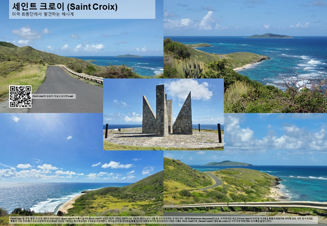 특히, 세인트 크로이 섬 최동단의 Point Udall은 미국 및 미국령 전체를 통틀어 최동단 지점이라는 점에서 의미가 있다. 그래서였을까, 2000년에 맞추어 이 자리에는 미국의 새천년을 기원하는 해시계 모양의 Millennium Monument가 건립되었다. 바다의 매서운 바람이 땅을 만나는 지점에 내리 꽂히는 햇빛, 그리고 그 속에 고고히 서있는 해시계를 지켜보고 있으면 경건한 마음이 절로 든다.