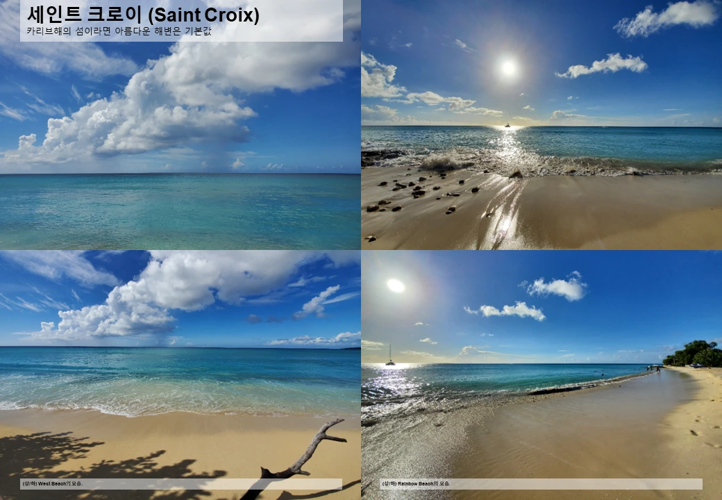 하지만 세인트 크로이 섬도 카리브해의 섬이니, 아름다운 해변을 여럿 갖고 있다는 점에서는 세인트 토머스 (Saint Thomas) 및 세인트 존 (Saint John) 섬과 동일하다. 특히 세인트 토머스 섬에 비해 한적한 편이다 보니 비슷하게 아름다운 바다라 해도 더 한적하게 즐길 수 있다는 점은 분명 세인트 크로이만의 이점일 듯하다.