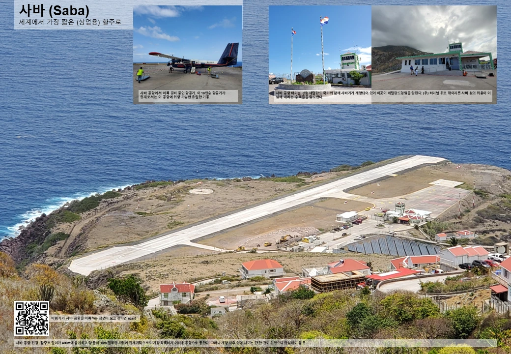 네덜란드의 최고봉 외에도 사바에는 또 하나의 기록이 있다. 바로 세계에서 가장 짧은 상업용 활주로가 이 섬에 있기 때문이다. 활주로의 길이는 단 400m로, 인천국제공항 가장 긴 활주로 길이의 단 1/10에 불과. 단거리 이착륙이 가능한 소형 프로펠러기만 취항 가능하다.