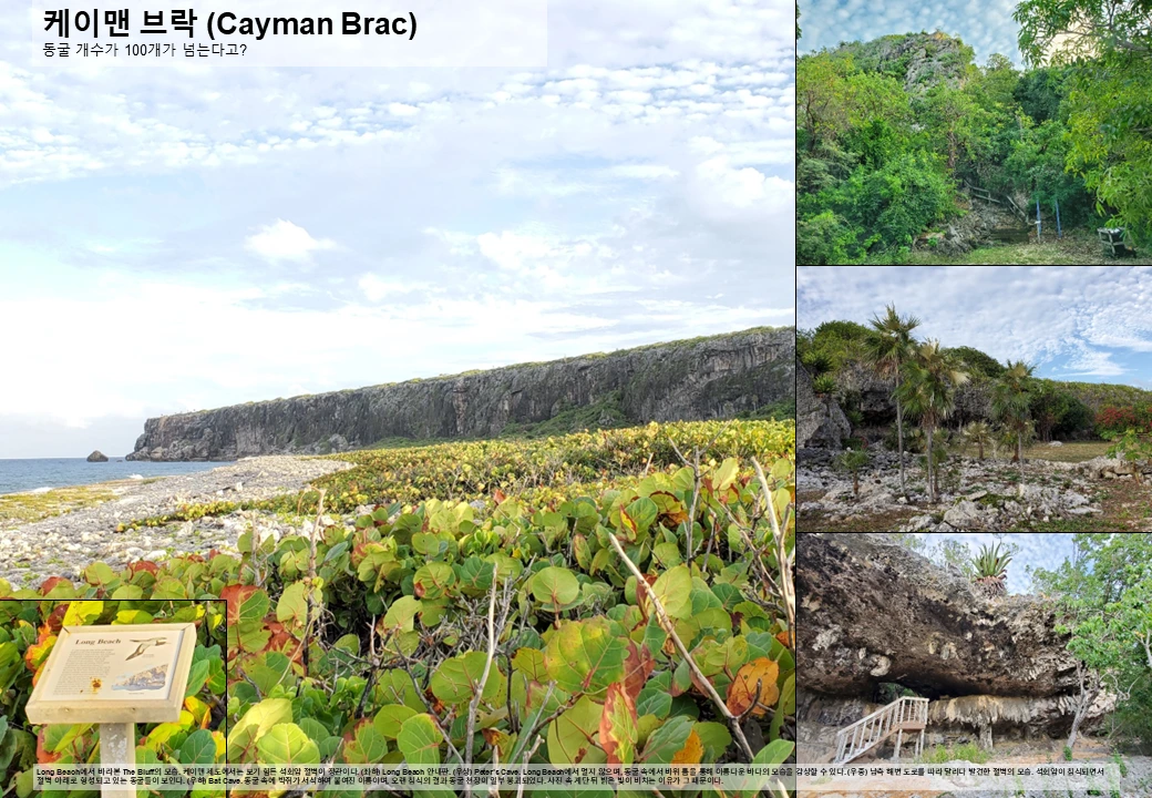 그래서 케이맨 브락 일주 드라이브는 유난히 즐겁다. 파란 바다를 따라 달리고 있었는데 어느 순간에 석회암 절벽이 기묘한 느낌으로 나타난다. 게다가 중간 중간에 들어가볼 수 있는 동굴들이 있어 이색적인 느낌을 더한다.