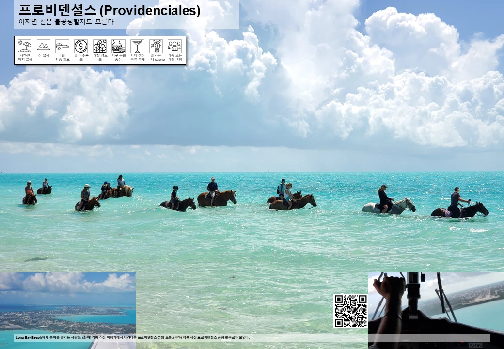 프로비덴셜스가 그 대표적인 사례. 환상적인 바다와 해변… 이 사실 이 섬이 물고 태어난 금수저의 대부분일테지만, 이 바다와 해변이 보통이 아니다. 그러고 보면, 어쩌면 신은 불공평할지도 모른다. 자연 환경의 축복을 고루 뿌려 주지 않았을지도 모르니.