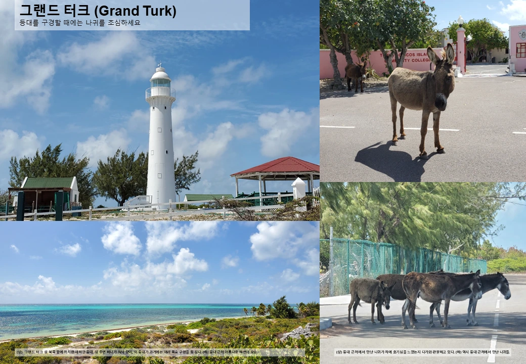 그랜드 터크 섬 지도만 봐도 알 수 있듯이, 섬 근해 바다는 상당히 얕아 근처를 항해하는 선박에게는 큰 위협이었을 것이다. 그래서 19세기 중반 섬 북쪽 끝에 등대가 건설되어 지금까지 운영되고 있다. 아마 이 등대는 오랜 기간 수많은 선박과 목숨을 재난으로부터 구했을 것이다.