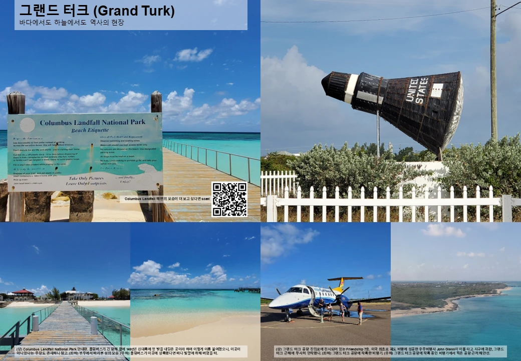 1960년대와 1970년대에 걸쳐 미국은 수십 차례 인류를 우주에 보냈고, 이 중 여러 대의 귀환 캡슐이 카리브해 그것도 그랜드 터크 섬 근해에 내린 것. 이를 기념하기 위한 것인지, 지금도 그랜드 터크 공항 입구에는 Friendship 7호 캡슐이 전시되어 있다.