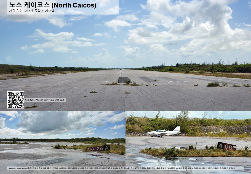 노스 케이코스의 주 도로를 따라 달리다 보니 오른쪽으로 공항이 나타난다. 그런데 인적은 고사하고 진입 차단 시설도 없다. 그래서 운영 중단된 공항인가 하여 들어가 보니, 주기장 한 켠에 누군가가 세워둔 경비행기가 있는 것을 보아 여전히 운영 중인 것은 맞는 듯하다.