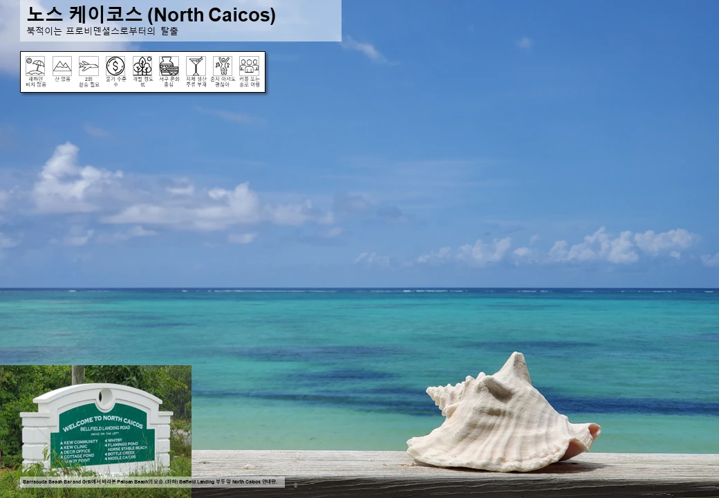 프로비덴셜스의 북적거림이 반갑다가도 살짝 지친다는 느낌이 들 때, 탈출구는 멀리 있지 않다. 단 25분만 페리를 타고 나가면 노스 케이코스라는 전혀 다른 세상이 펼쳐지기 때문. 자연 환경 자체는 프로비덴셜스와 유사한 점이 많은데도 사람이 적고 개발이 덜 되어 있다는 이유만으로도 전혀 다른 느낌이 된다. 그러니 프로비덴셜스까지 갔다면 노스 케이코스는 꼭 한번 들러볼 일이다.