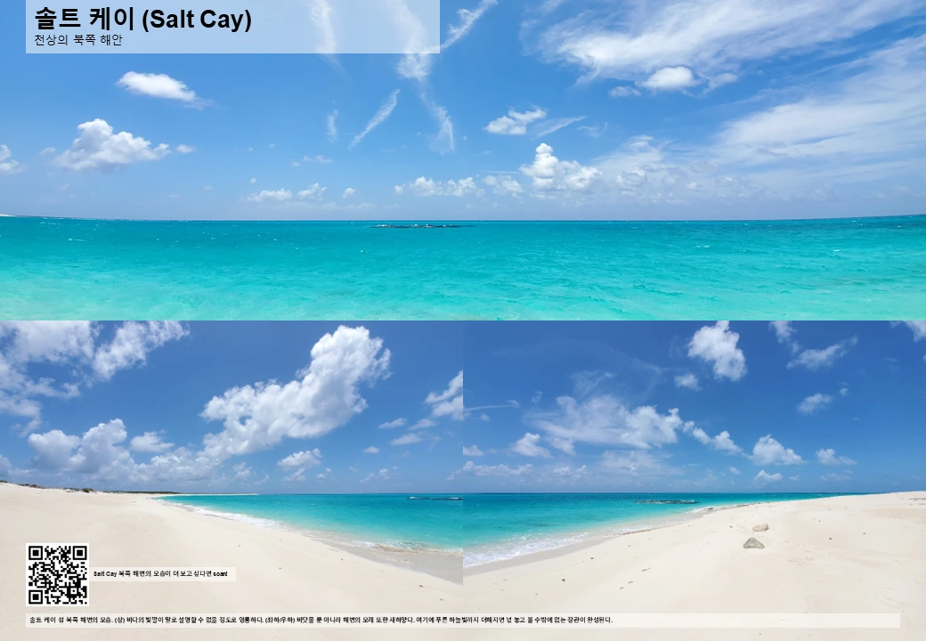 야트마한 모래 언덕을 넘자마자 보이는 장관. 새하얀 모래에 청량감 폭발하는 바다의 색. 거기에 하늘을 수놓은 구름까지. 천상의 모습을 겨우 야트마한 모래 언덕 하나로 감추어 두는 솔트 케이는 역시 관광객에게 관대한 섬이었다.