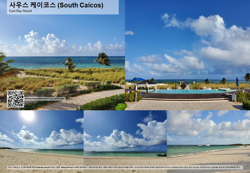 사우스 케이코스에 호텔은 세 개 뿐이다 (렌트 가능한 빌라가 더 있을 수는 있다). 하지만 호텔이 세 개 뿐이라 하여 아쉬워할 일은 아닌 것이 이 세 가지로 다양한 여행 니즈가 모두 커버되기 때문이다. 가장 저렴한 South Caicos Ocean & Beach Resort, high-end급 Sail Rock Resort, 그리고 이 둘의 중간에 East Bay Resort (현재는 Salterra Resort로 재개관 준비중) 가 있다.
