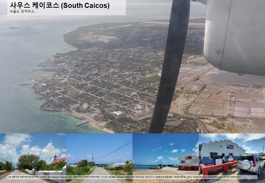 교통: 섬이 크지는 않으나 (섬 종단 거리 15km 정도), 근거리 외에는 택시나 렌터카 이용 필수이나, 택시가 거의 없어 렌터카 이용 추천. 렌터카는 하루 100~120달러 선이며, 영국령인 관계로 좌측 통행이기는 하나 도로에 차가 거의 없어 별 부담은 되지 않음. 자세한 정보는 터크스 케이코스 제도 관광협회로 (https://www.visittci.com/south-caicos/getting-around).